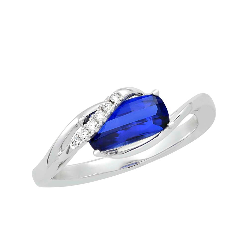 14K White Gold 1.24Carat TW Lab Grown Blue Sapphire and 0.04Carat TW Natural Diamonds Ring