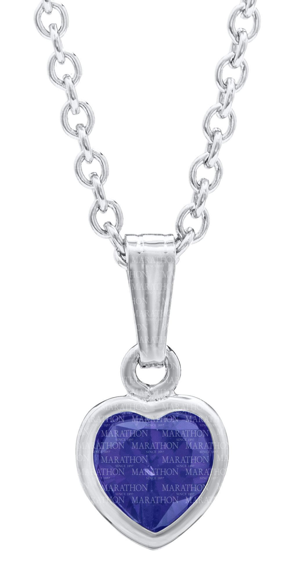 Here is the perfect pendant for your September baby! This is a sterling silver sapphire CZ heart shaped pendant. The 14 karat gold chain is 13 inches, so that it fits your baby comfortably.