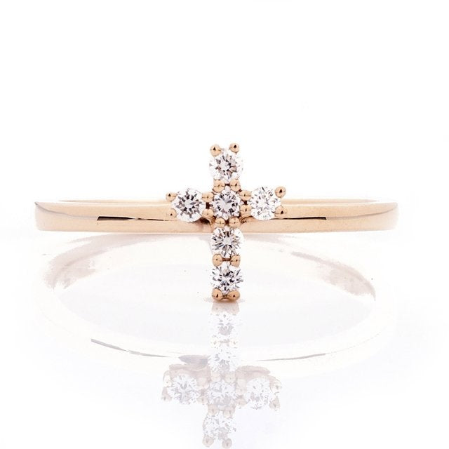 14K Yellow Gold Diamond Petite Cross Ring, 0.13 Carat TW