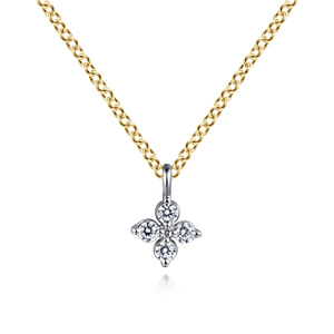 14K Yellow/White Gold Diamond Flower Shape Pendant, 0.08Carat TW