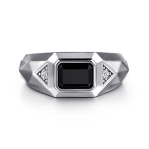 Sterling Silver Faceted Mens Ring with Onyx, 0.05 Carat TW