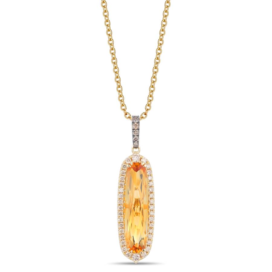 14K Honey Gold LeVian 2.60Carat TW Cinnamon Citrine with 0.31Carat TW Chocolate and Vanilla Diamond Pendant