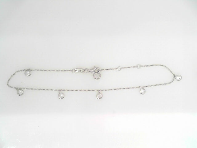 This 10" anklet features a sterling silver plated bezel setting adorned with .91 carat total weight cubic zirconia stones, offering a delicate sparkle that enhances any look.