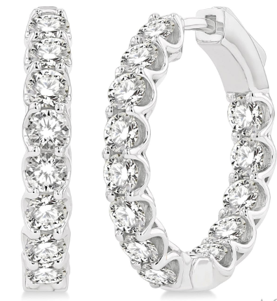 3.0Carat TW Inside-Out Round Cut Diamond Hoop Earrings in 14K White Gold