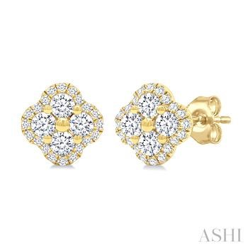 14K Yellow Gold Diamond Clover Diamond Fashion Stud Earrings, 0.50Carat TW