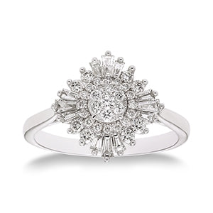 Featuring a dazzling, bold style, this is a 14 karate white gold diamond ring size 7. This gorgeous piece features 0.50 carat diamond total weight. The contemporary style makes an eye-catching, vivacious piece to liven up any look.