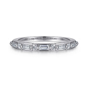 14K White Gold .42Carat TW Baguette & Princess Cut Diamond Anniversary Band