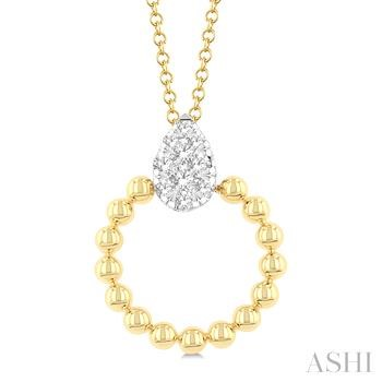 10K Yellow Gold Diamond Bead Shank Pear Shape Lovebright Pendant, 0.15Carat TW