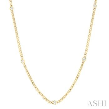 14K Yellow Gold Bezel-Set Round Diamond Curb & Cuban Link Station Necklace, 0.50Carat TW
