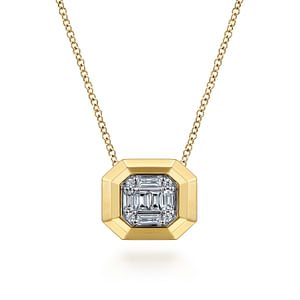 14K Yellow Gold Geometric Baguette & Round Diamond Pendant, 0.33Carat TW