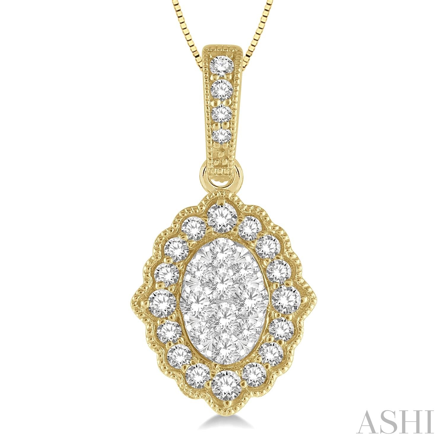 14K Yellow Gold Lattice Edge Oval Shape Lovebright Pendant, 0.25 Carat TW