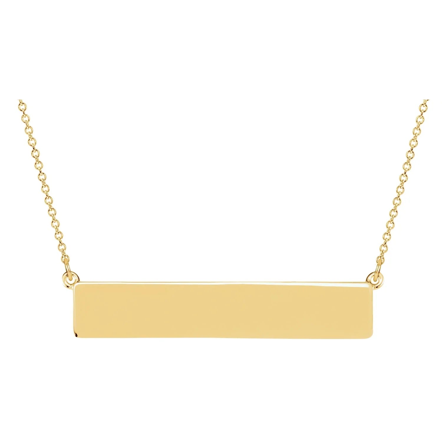 Give something personal! This 14 karat yellow gold polished bar necklace is perfect for engraving a person's name or a special message. This beauty would make a beautiful gift for someone special or for yourself.