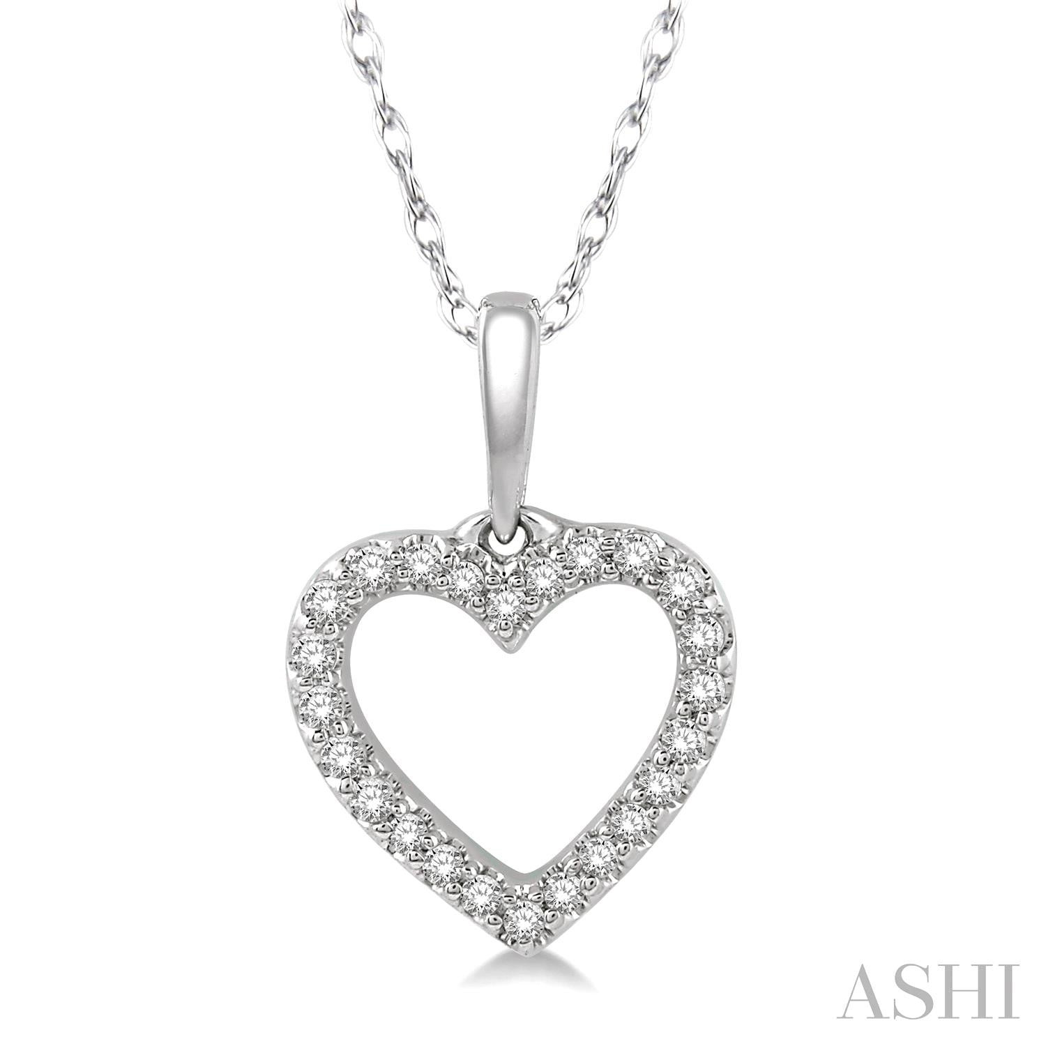 White Gold Diamond Hollow Cut Heart Pendant, 0.10CTW