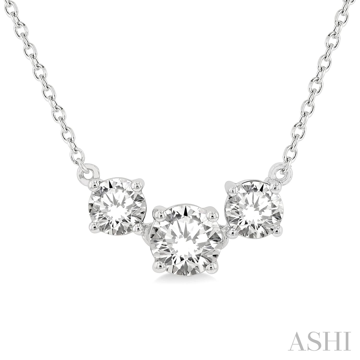 This 14 karat white gold diamond station necklace features three round diamonds. The shimmer of these diamonds will make you feel like a million bucks! The center diamond is larger than the other two creating and easy on the eyes experience for everyone around you. This necklace will give you a newfound confidence, easily becoming your favorite piece in your collection. The necklace has a diamond total weight of 1.00 carats and is 18 inches in length.