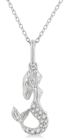 10KW .06CTW Petite Mermaid Round Cut Diamond Fashion Pendant With Chain 18"