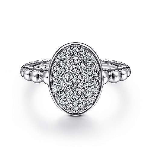 Sterling Silver Beaded Oval Ring with White Sapphires Pave
