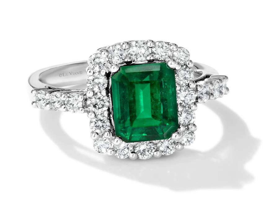 Whether you are looking for a fashion ring or a unique engagement ring, this beautiful emerald ring is the perfect option. The 2.00 carat emerald is a show-stopper all on its own, but when combined with a stunning diamond halo, it becomes other-worldly. Three round diamonds line each side of the shank to further adorn this beauty with sparkle. Being mad of platinum, this ring is both beautiful and durable. The diamond total weight of this beauty is 0.88 carat.