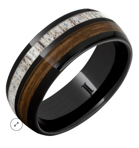 Barrel Aged Collection 8MM Black Ceramic Dome 2MM Cab 2MM Antler Size 9