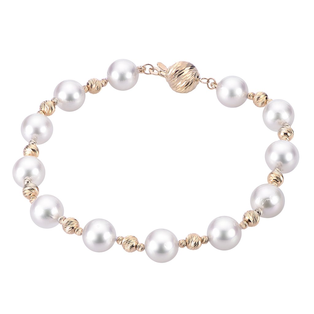 14K Yellow Gold Pearl & Bead Bracelet, 7.5-8mm Pearls