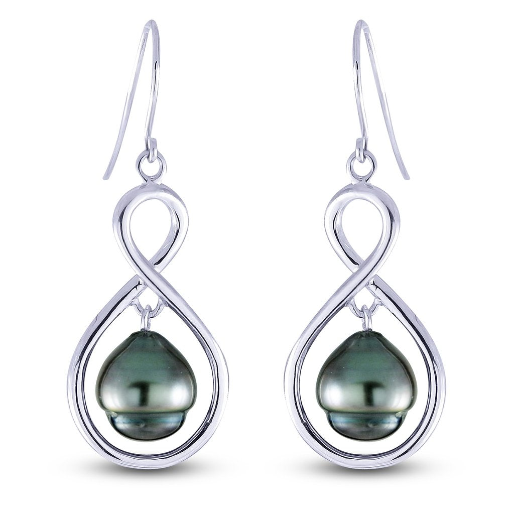 Featuring a beautiful, stunning style of sterling silver tahitian pearl drop earrings. This elegant pair features 8.0 -- 9.0 millimeter tahitian cultured pearls. The gorgeous, contemporary design makes this a bewitching pair of earrings.