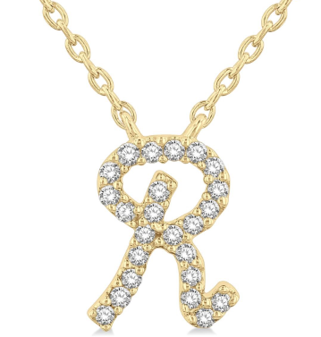 Add a personal touch to your everyday look with our 10K Yellow Gold Diamond Initial "R" Necklace. This delicate piece features a script initial "R" crafted in 10K yellow gold and adorned with 0.07 carat total weight of sparkling diamonds. Elevate your style with this unique and meaningful accessory.