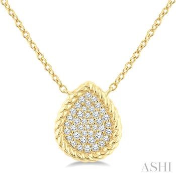 10K Yellow Gold Pave Set Pear Shape Round Cut Diamond Fashion Pendant, 0.20Carat TW