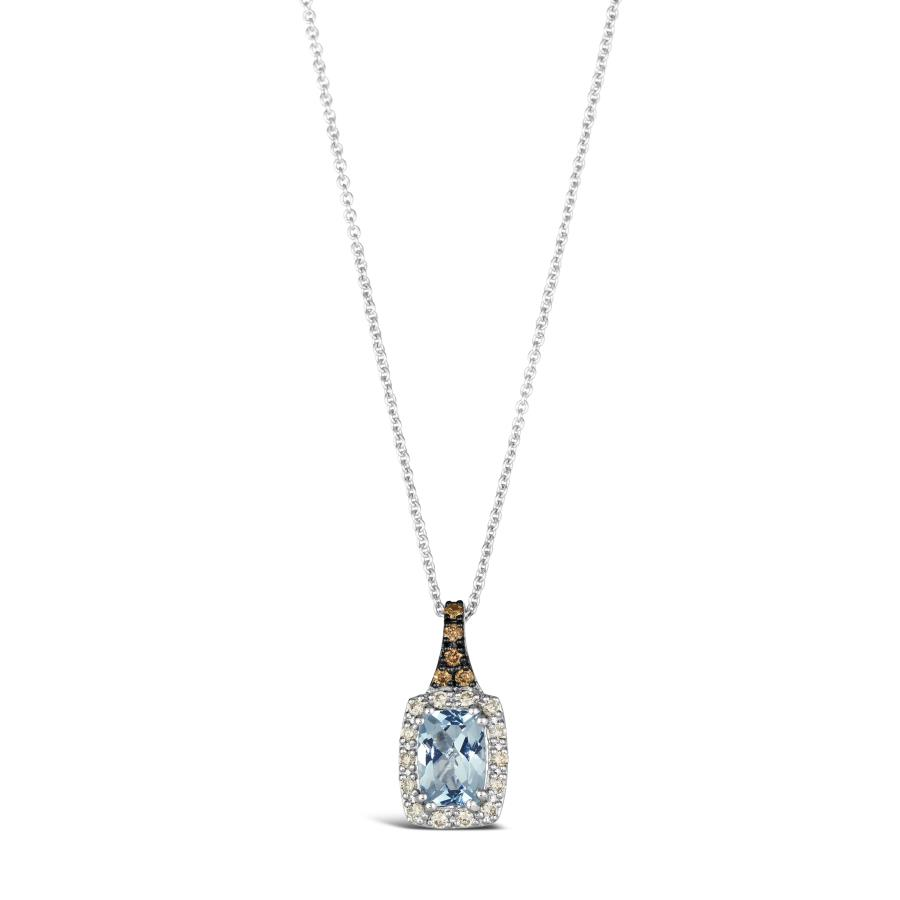 This exquisite 18" pendant features 14K Vanilla Gold by LeVian, showcasing a 0.70 carat total weight Sea Blue Aquamarine accented with 0.17 carats of Chocolate and Nude Diamonds. A stunning blend of colors and sparkle to elevate any look.