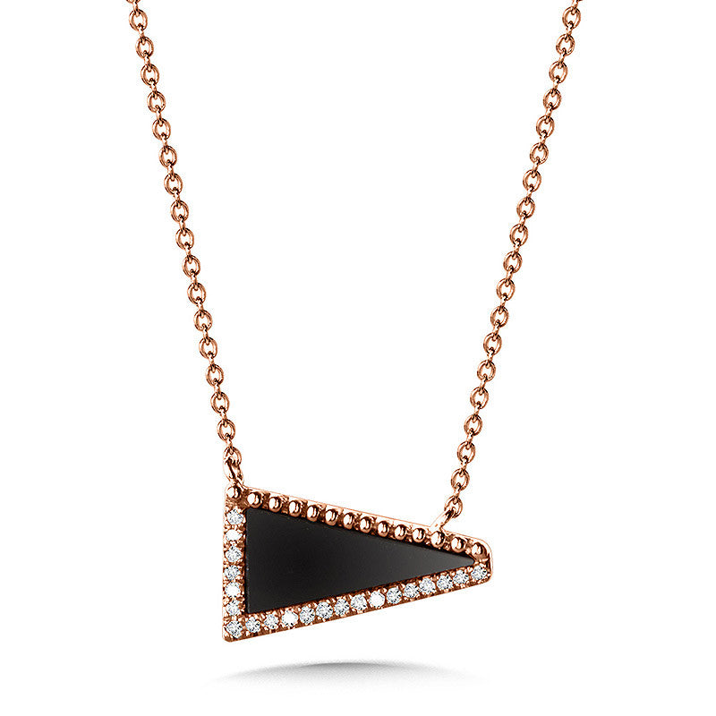 14KR Gold Triangular Onyx and Diamond Necklace